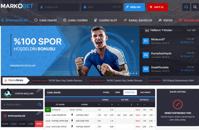 Markobet online bahis ve casino sitesi, Spor bahsleri, Canlı bahis, E-spor, Sanal Bahisler bölümlerini de içine alan oldukça geniş bir spor ağına sahiptir. Spor bahislerinde spor ve bahis anlamında aradığınız herşeyi bulmanız mümkündür. Sitede. haftada binlerce karşılaşmaya bahisler açılmaktadır. Futbol, Tenis, Basketbol, Buz Hokeyi, Hentbol,Voleybol, Kriket, Amerikan Futbolu, Ragbi, Boks, MMA Dövüş sporları, Bilardo, Dart, Masa Tenisi, gibi branşların yer aldığı Spor bahisleri bölümünde, ulusal ve uluslararası birçok karşılaşmalara bahisler açılmaktadır. Oranların yüksek olması ile oyunculara kazançlı ve heyecanlı dakikalar sunulmaktadır. Sitede yer alan 'Bahis bozdur' 'Bahis sat' özelliği ile karşılaşma sonucunu beklemeksizin kazançlarınızı katlama imkanı bulabilirsiniz. Sitenin E-Spor bölümünde, Counter-Strike, Dota 2, League of Legends ve StarCraft oyunları yer almaktadır.